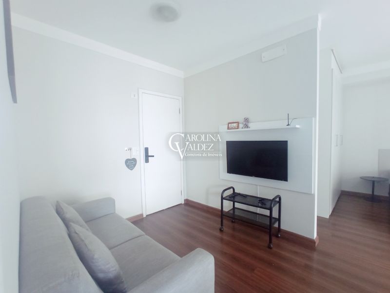 O apartamento possui 48m², 01 dormitório (sendo 01 suíte) com guarda roupa planejado, banheiro com gabinete, espelho, box blindex e ducha. Sala de estar e sala de jantar integradas, cozinha americana planejada, varanda gourmet e 01 vaga de garagem coberta.
