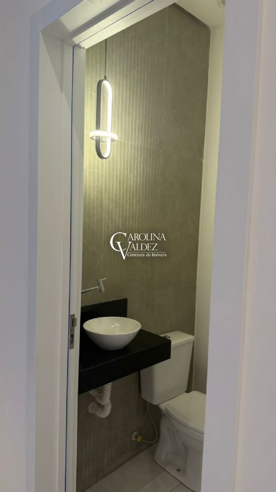 A área social é composta por sala ampla, bem iluminada naturalmente, integrada de forma harmoniosa e com lavabo. Cozinha é funcional e já dispõe de armários planejados, facilitando a rotina com praticidade.