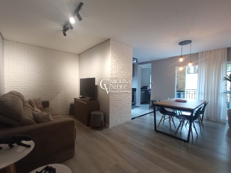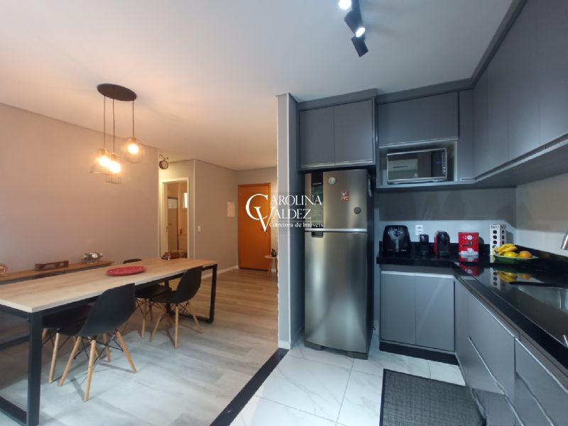 Apartamento térreo com 74m², muito bem distribuído e planejado para oferecer conforto e praticidade. 2 dormitórios, sendo uma suíte, sala para dois ambientes e varanda gourmet com fechamento em vidro, que proporciona maior aproveitamento do espaço. Possui cozinha equipada com armários sob medida em todos os ambientes e piso vinílico de alta qualidade, além de duas vagas de garagem cobertas.