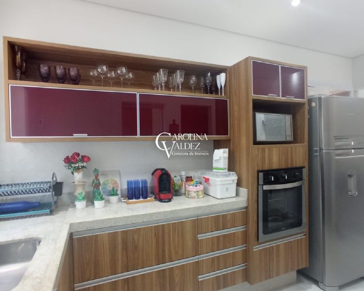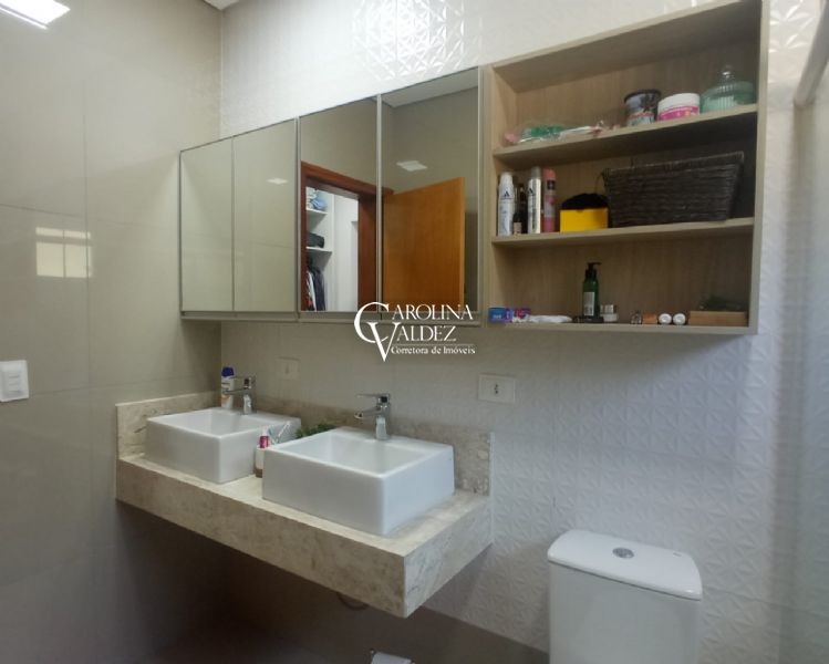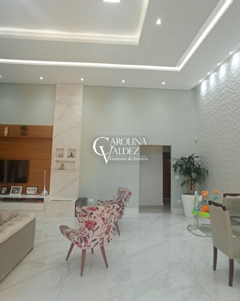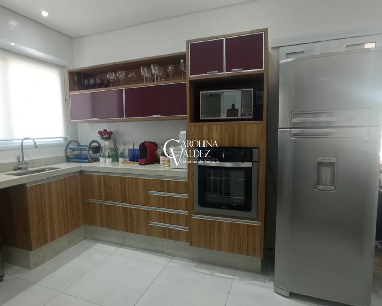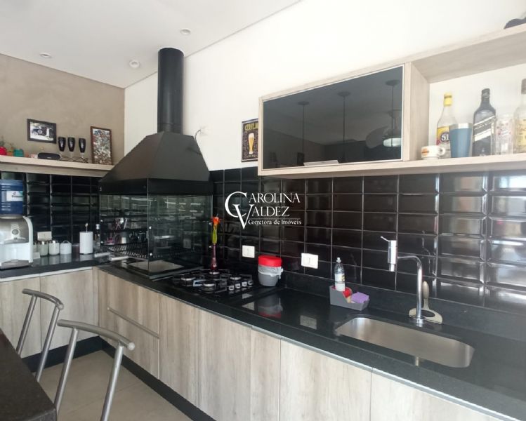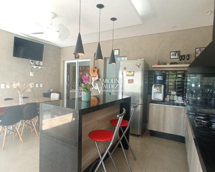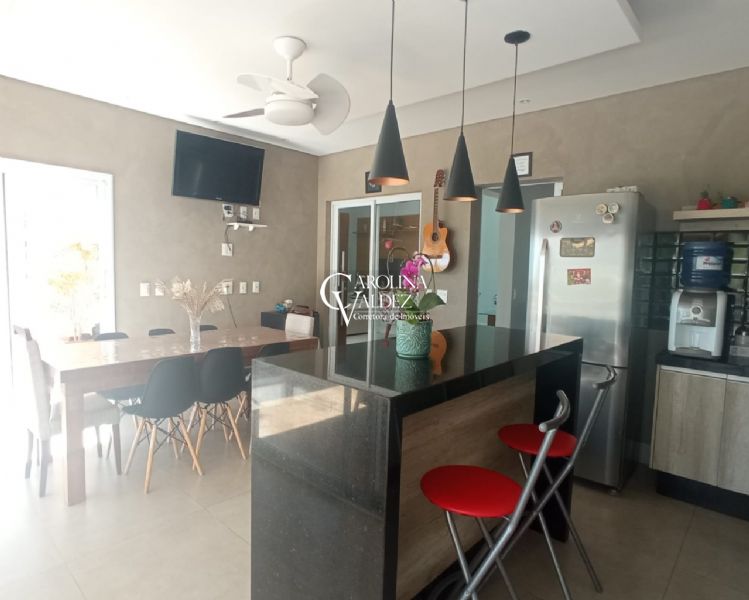 Conta com sala de estar e jantar com pé-direito alto, 3 dormitórios sendo 1 suíte, escritório, lavabo, cozinha com armários planejados, lavanderia, despensa, além de uma ampla área gourmet com churrasqueira, banheiro externo, depósito e piscina com deck.