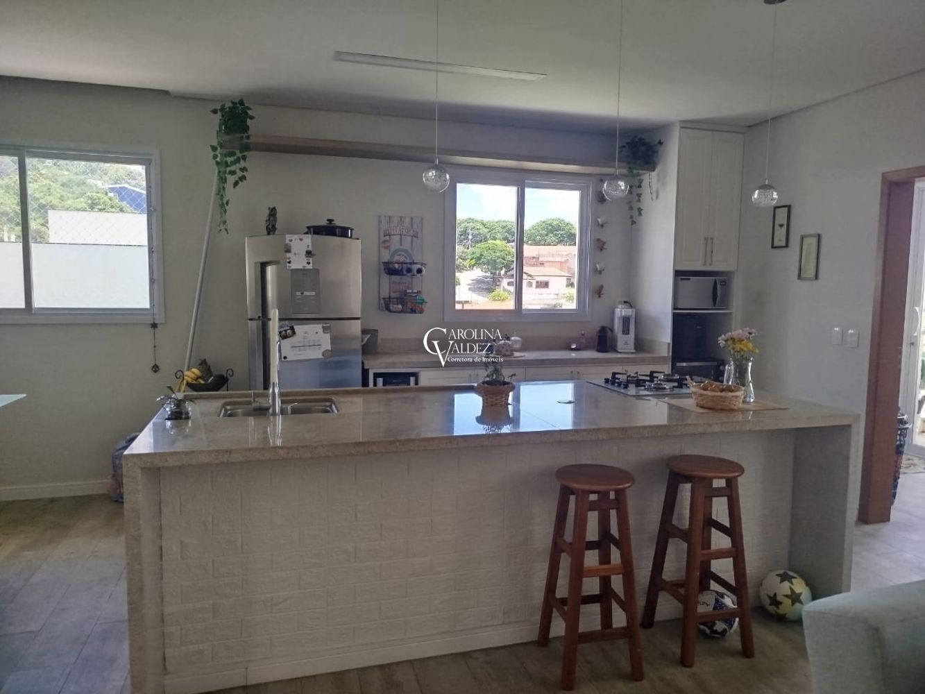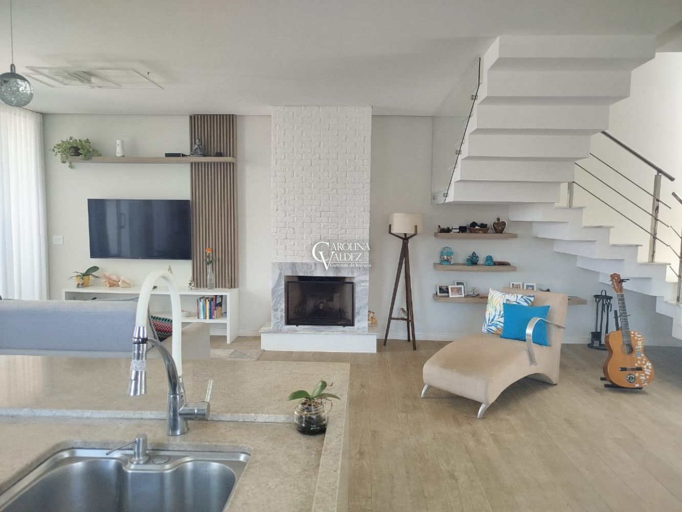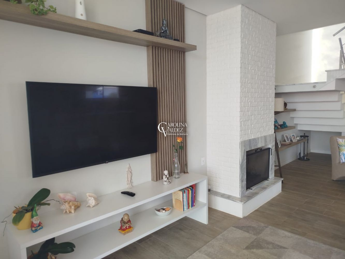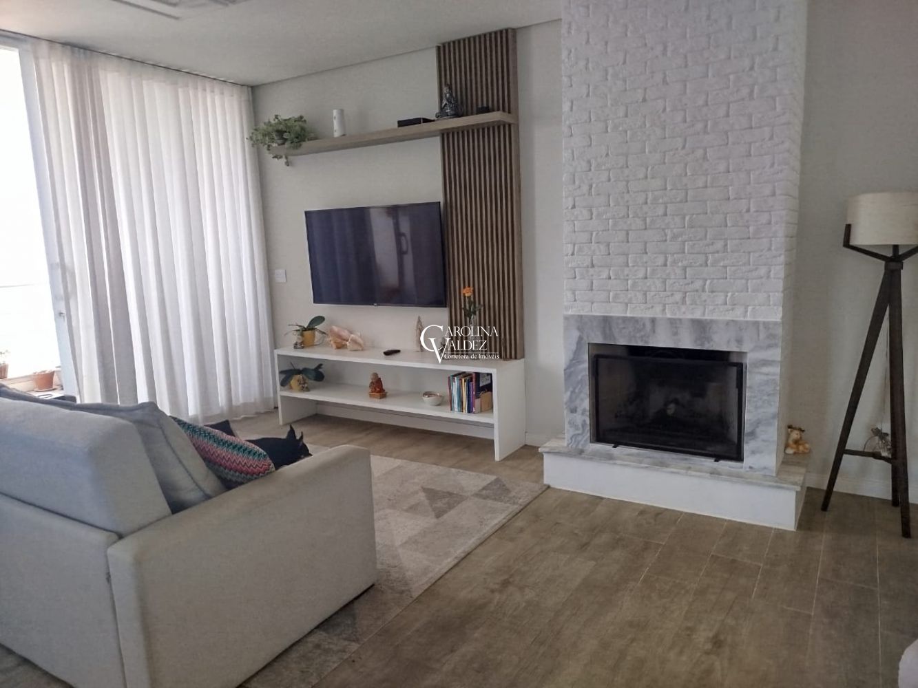 Os ambientes sociais são amplos e bem distribuídos, com salas de estar, jantar e TV, além de um aconchegante living com lareira a lenha.