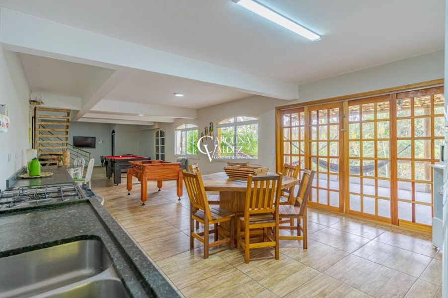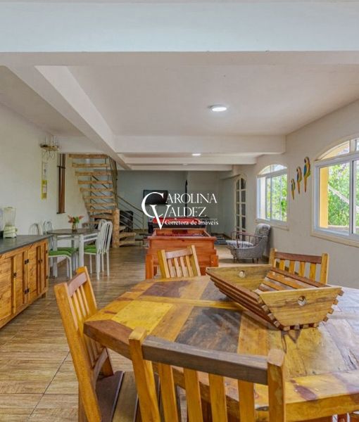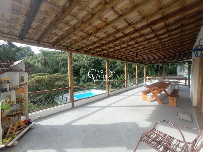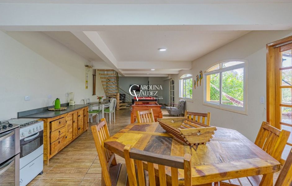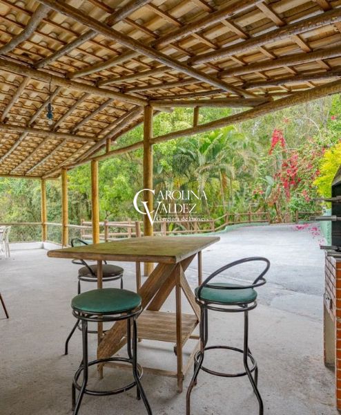 Um terreno amplo de 2.525,49 m² e área construída de 261,68 m², oferecendo três suítes espaçosas, sala de jantar, sala de TV, cozinha completa e uma varanda de com vista permanente para a mata nativa.